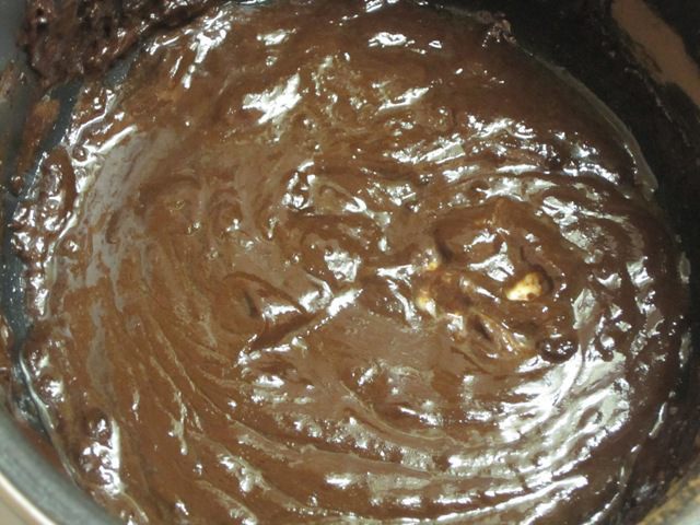 Для глазури смешать в кастрюле 2 столовые ложки какао с 75 гр. сахара. Добавить 100 грамм сметаны и сливочное масло, перемешать. Кастрюлю поставить на небольшой огонь и, постоянно помешивая, довести до кипения. Варить 2 минуты и убрать с огня.