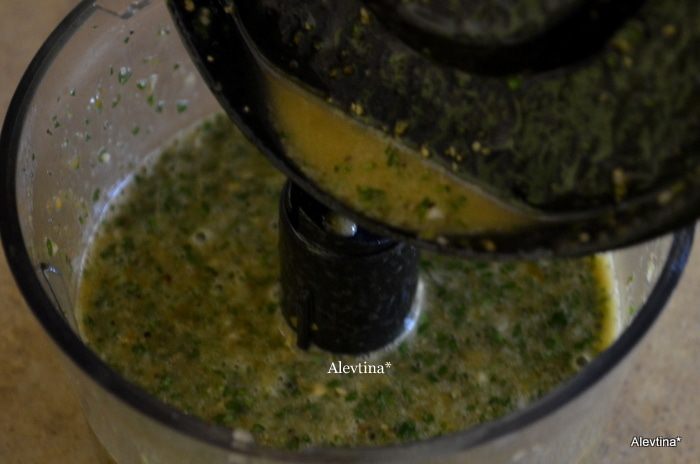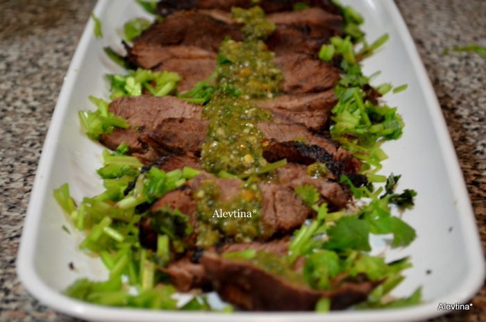 Предварительно слегка смажем кусок пашины готовым соусом Чимичурри.