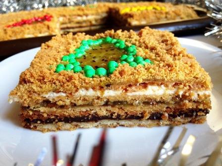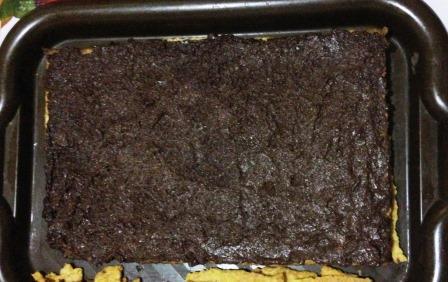 Остальное молоко довести до кипения со 100 г сахарной пудры, снять с огня, тонкой струйкой влить разведенный пудинг, перемешать. Вернуть на огонь и постоянно помешивая, варить в течение 1 мин. Горячий крем разделить пополам и в половине растопить 100 г шоколада, а во второй половине - пакетик ванильного сахара.