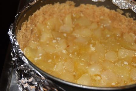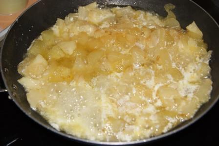 В большой сковороде смешать масло (50 г) и сахар(150 г), довести до интенсивного кипения. Добавить яблоки на сковороду , готовить пока не выпарится жидкость. Довести сливки до кипения. Когда яблоки покроются карамелью, влить сливки, перемешать. Оставить остужаться.