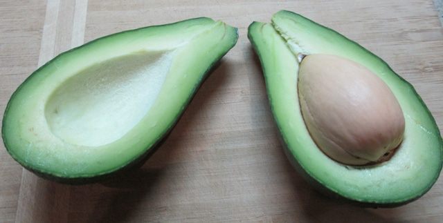 Авокадо разрезать пополам, очистить от кожуры, удалить косточку. Взвесить (у меня ушло 2/3 авокадо).