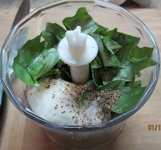 Поместить в блендер мясо тунца, авокадо, майонез «Слобода», базилик, соль, свежемолотый перец. Взбить в однородную массу.