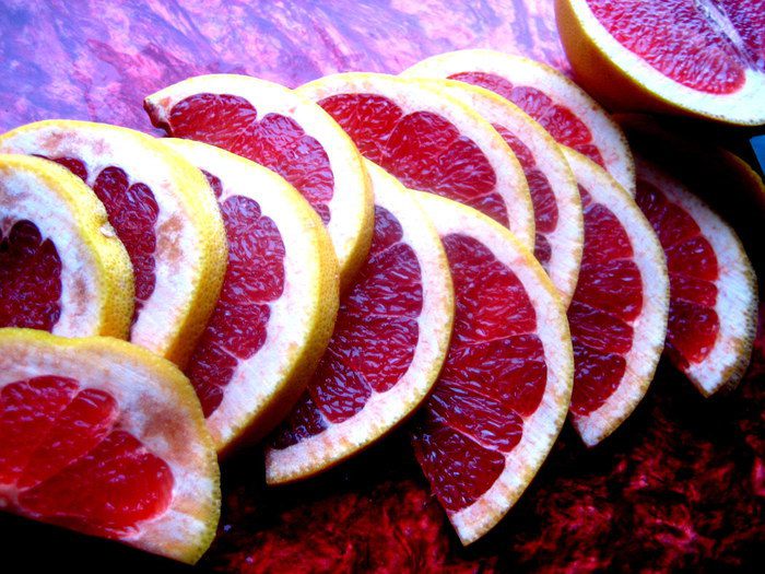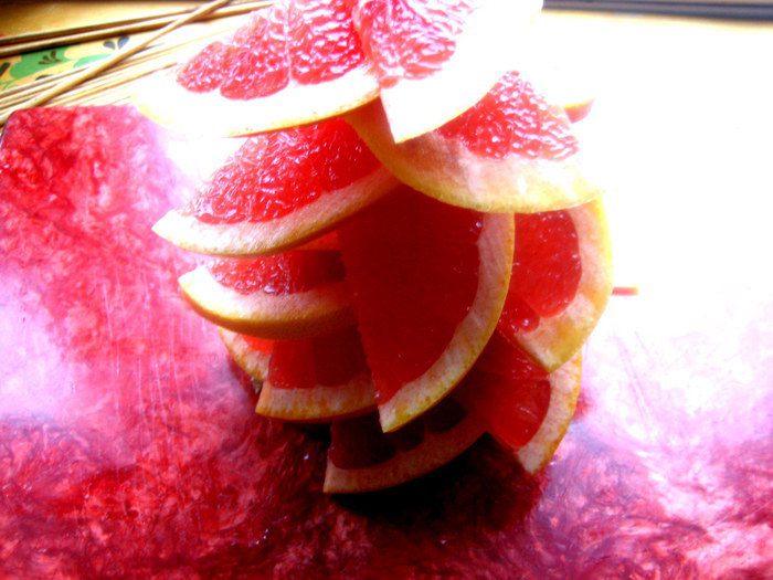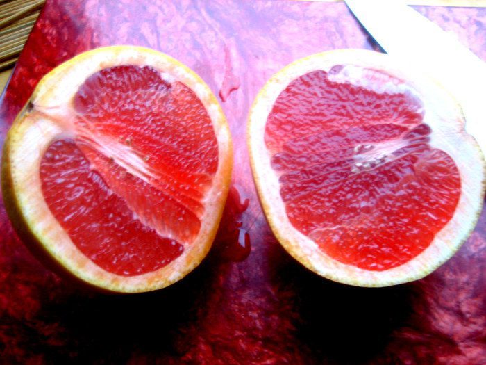 Оказался дома грейпфрут... берём и его! Разрезаем пополам... Заменить можно лимоном или апельсином.