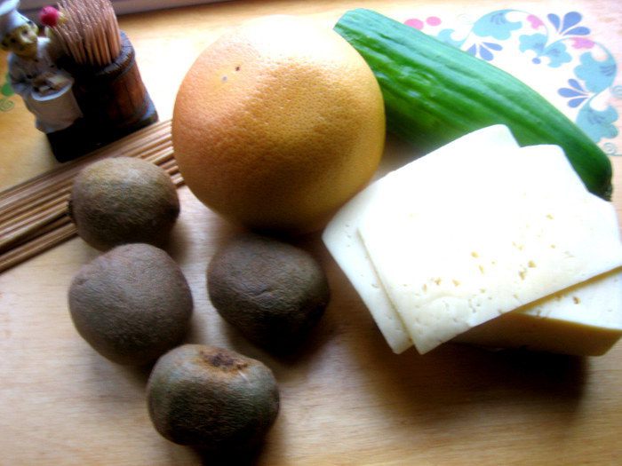 Продукты...Не удивляйтесь, что на фото киви. Нужны крупные и твёрдые, но у меня уже стали мягкие, поэтому в следующий раз сделаю ёлочку из киви)))