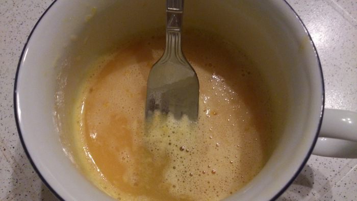 Для крема смешать венчиком 1 яйцо, 20 г сахара и 1/2 ст.л. муки.