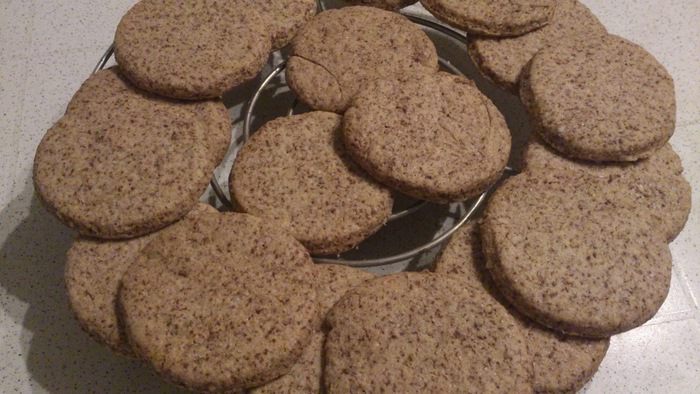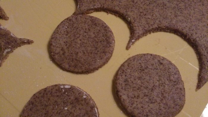 Тесто раскатать в тонкий пласт (5 мм) и вырезать формой печенье. Выпекать на покрытом пергаментом противне 20 минут при 180°С.