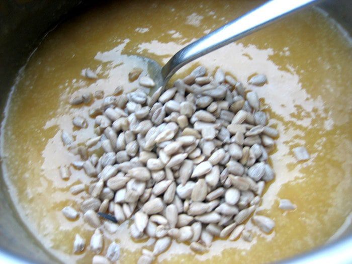 Ближе к концу захотелось что-то бросить туда..., были семечки уже очищенные, очень кстати)))
