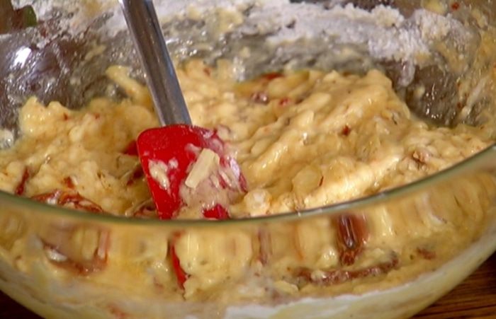 Вяленые помидоры мелко порезать и добавить в яичную массу.