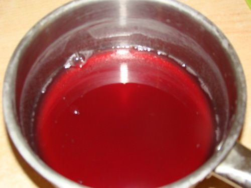 Агар-агар залить соком (у меня домашний яблочно-виноградный, поэтому красного цвета) на 1 час.