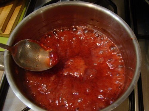 Всыпать сахар. Варить на среднем огне при постоянном помешивании 12 минут.