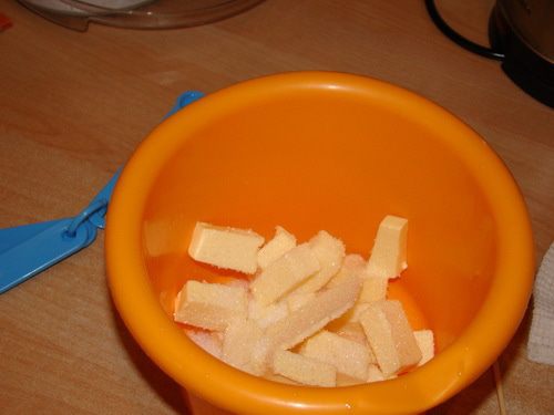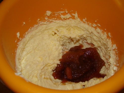 Сливочное масло (210 г) взбить с сахаром (30 г).