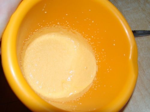 Агар заливаем соком, оставляем на 20 минут набухать, добавляем сахар и ставим на огонь. Варим смесь на медленном огне, до образования мелких пузырьков.