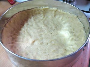 Также можно добавить в этот пирог немного свежих или консервированных фруктов, выложив их кусочками на тесто перед тем как заливать начинкой.