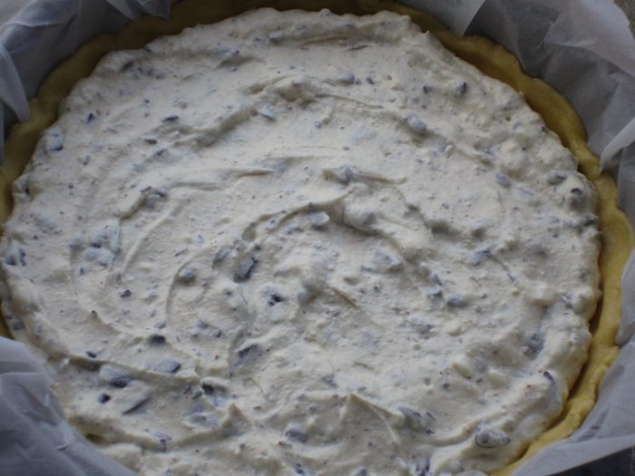 Начинка:Рикотту соединить с 2 ст.л. сахара,яйцом,ликёром и порубленным шоколадом.