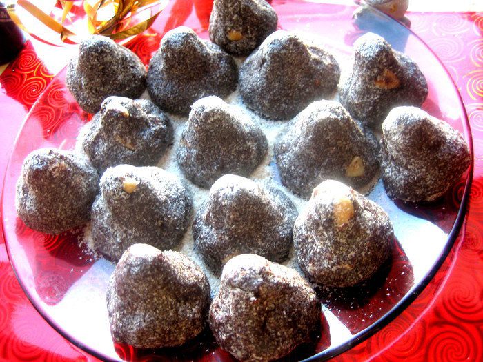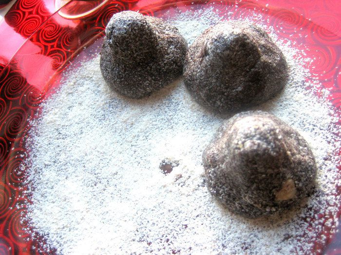 Лепим руками (быстро, иначе поплывут от тепла рук!) типа трюфеля.