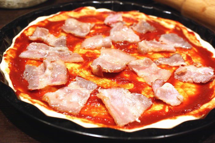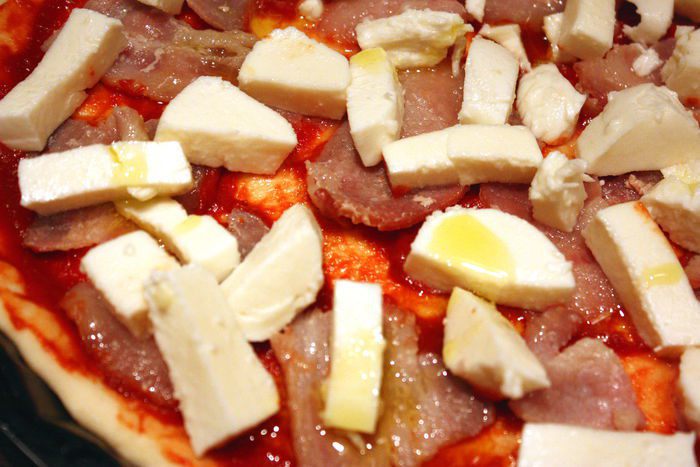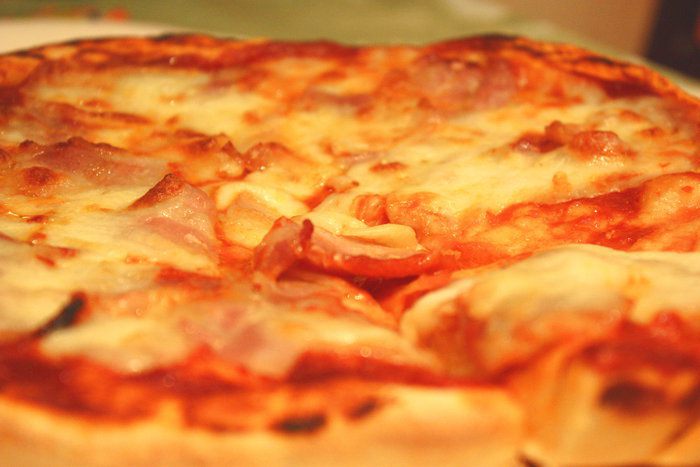 Пицца теплая и пышная, с нежным сливочным вкусом сыра и кусочками бекона! Вот, что нужно в холодные осенние деньки!