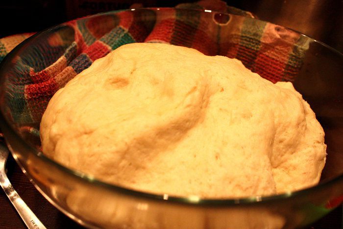 Кладем наш колобочек теста в миску, накрываем полотенцем и оставляем подниматься где-то на 1 час.