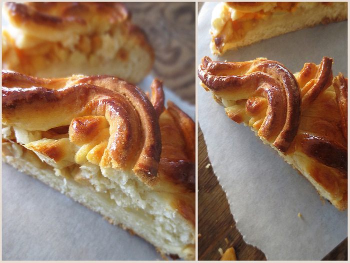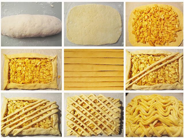 Из оставшихся полосок делаем "волны" По три полоски вместе выкладываем на поверхность пирога.