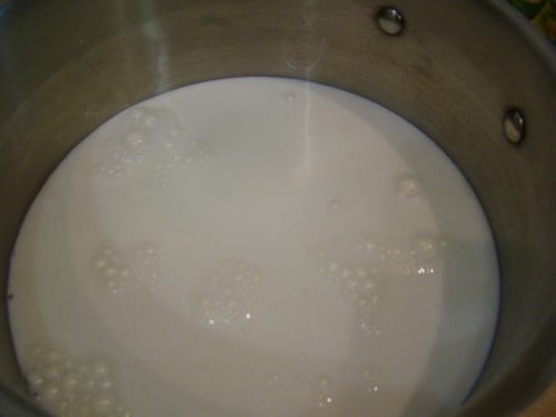 Масло, воду, соль, молоко соединить, поставить на медленный огонь, дождаться, пока начнет закипать, убрать с огня.