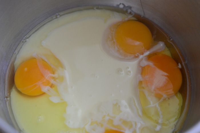 Сразу напишу, берите только хорошее качественное сгущенное молоко, взбивать интенсивно ничего не нужно, выпекать по рецепту от 35 минут, но у каждого духовка разная, проверяйте по сухой палочке, я выпекала кекс около 1 часа. Кушать можно сразу же, он очень вкусный!!! Только не забудьте полить его белым шоколадом и посыпать орешками, кексик от этого еще выиграет во вкусе!!! Рецепт. Растопите сливочное масло и остудите.