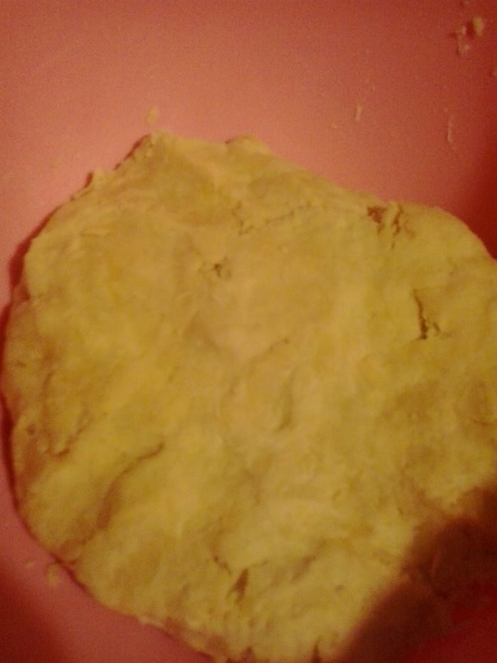 К муке с маслом добавляем 1 яичный желток, 3-4 столовые ложки ледяной воды и замешиваем тесто. Готовое тесто заворачиваем в пленку и отправляем в холодильник на 15 минут.