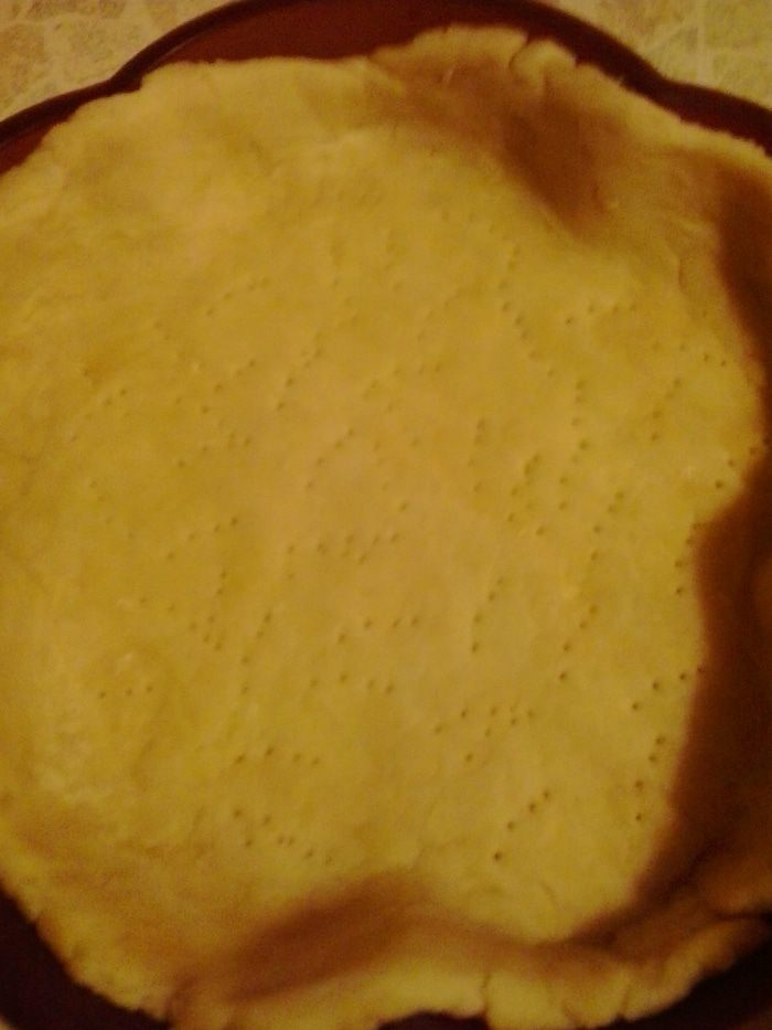 Готовое тесто раскатываем, выкладываем в предварительно смазанную сливочным маслом форму (у меня силиконовая), накалываем вилкой, отправляем в холодильник на 10 минут. Затем достаем форму и ставим в духовку на 7-10 минут, температура 180°С.