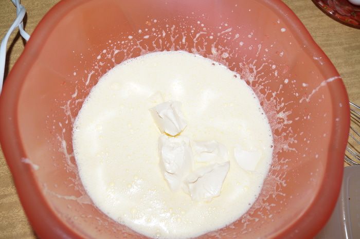 Добавляемым сметану, тщательно все перемешиваем и даем постоять 5 — 10 минут.