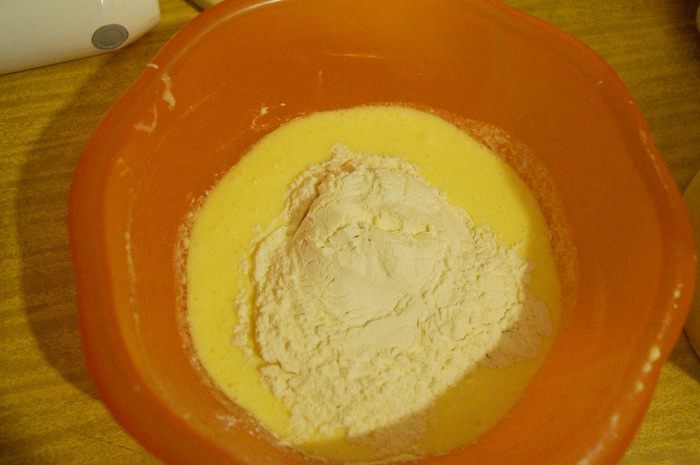 Добавляем муку, можно добавить ваниль, корицу. Хорошо замешиваем тесто до консистенции «мягкого творога».
