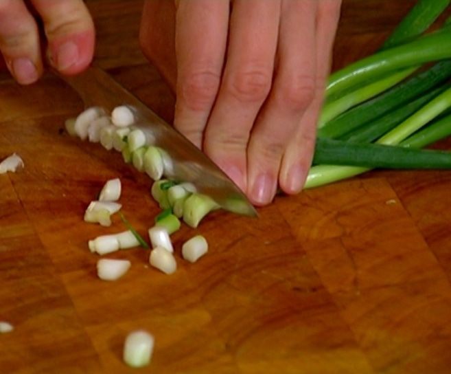Зеленый лук мелко порезать.