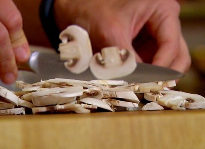 Грибы нарезать пластинками.