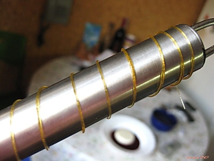 Тыльной стороной чайной ложки зачерпнуть карамель, должна потянуться тонкая карамельная нитка, которую нужно тут же начать наматывать на ручку, как нитку на катушку. Карамель очень быстро застывает, свисающие нити карамели по краям нужно обломать (кстати, они тоже могут украсить ваш десерт), а спираль очень легко соскальзывает с ручки.