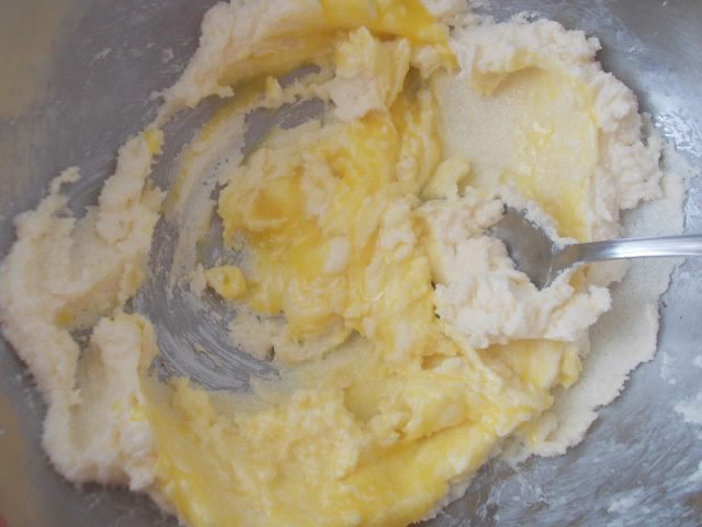 Мягкое сливочное масло растереть с сахаром добела. Добавить желтки.