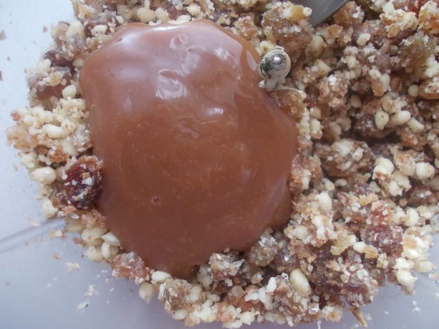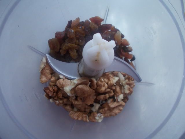 Орехи с изюмом измельчить в блендере или мясорубке.