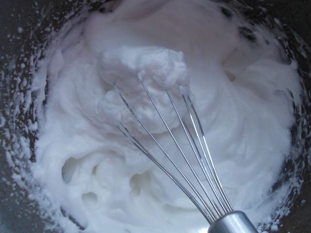 Белки взбить до устойчивых пиков.