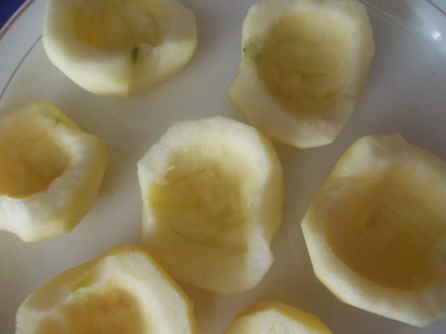 Яблоки почистить,разрезать вдоль и ложкой вынуть серединку.