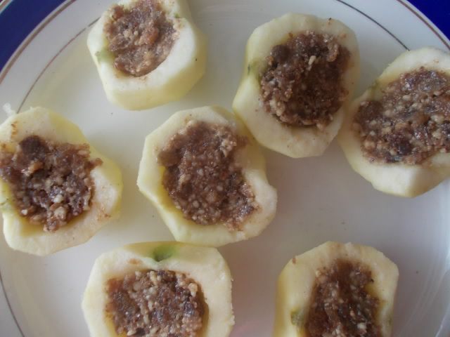 Нафаршировать яблоки начинкой.