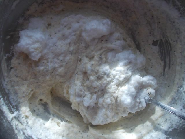 Добавить муку и мак.