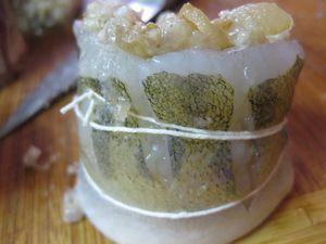 Взбить мед, горчицу и майонез. Посолить, поперчить, сбрызнуть лимонным соком, добавить пассерованные лук и морковь. Все тщательно перемешать.