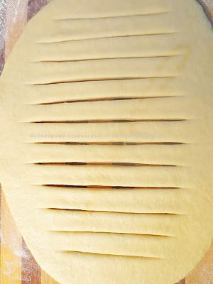 Готовое тесто разделить тесто на 2 одинаковые части и раскатать 2 лепешки овальной формы, толщиной 0,8-1 см