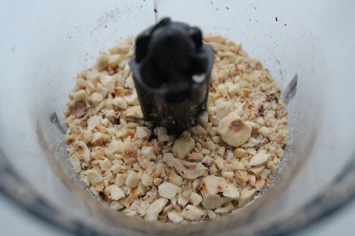 Фундук обжарить на сухой сковороде, удалить темную кожицу (она сама отделится в процессе жарки)