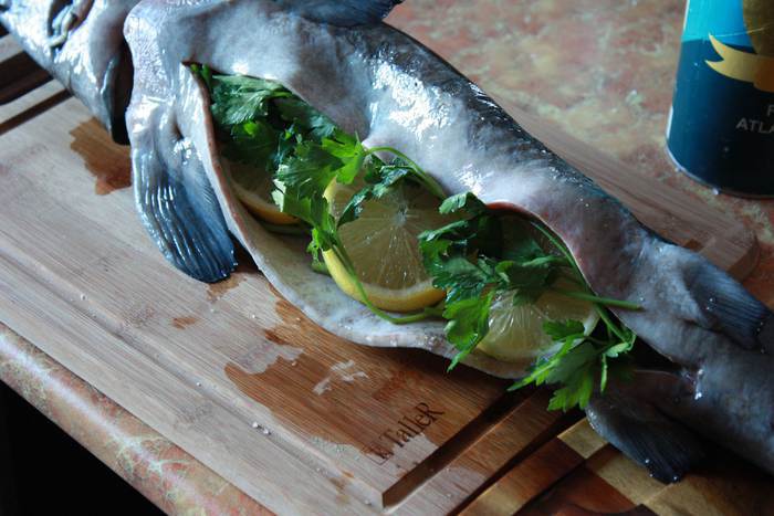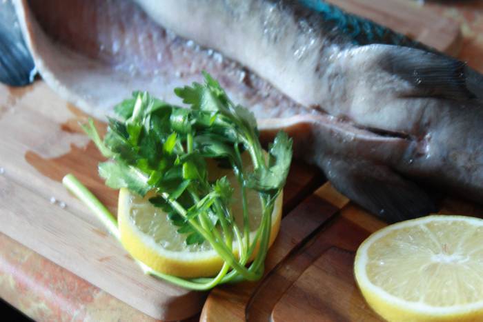 Для начала подготовим рыбу. Выпотрошим ее аккуратно, главное не повредить желчный пузырь. И будьте аккуратно с шипами на хребте, можно пораниться. Хорошенько промоем под холодной водой, просушим.