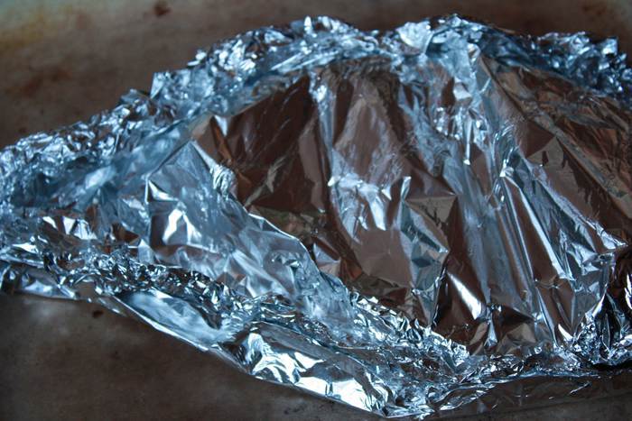 Выливаем сверху вино и закрываем фольгой тщательно ее закрепив.