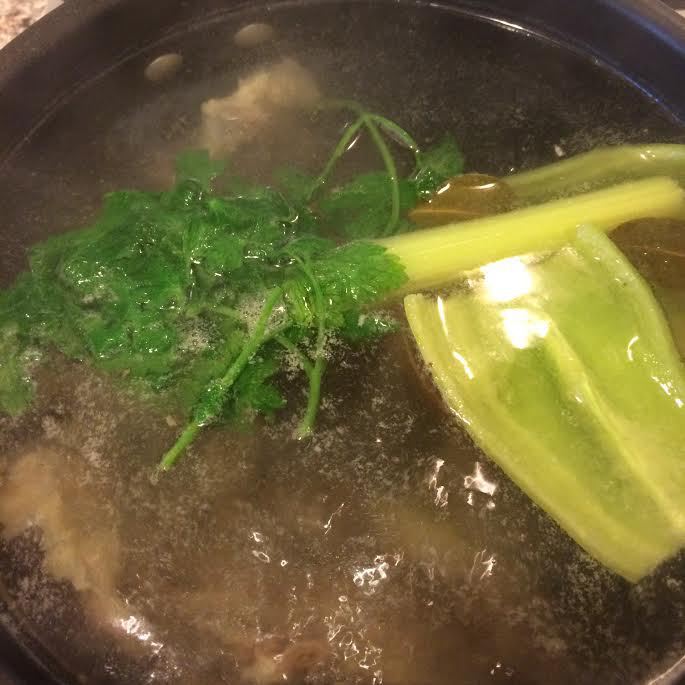 Бульон: мясо вымыть, залить водой, довести до кипения, снять пену, добавить овощи, лавровый лист и варить на медленном огне до готовности. Готовый бульон процедить.