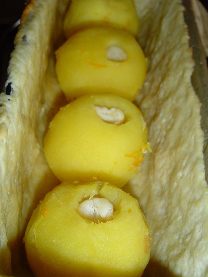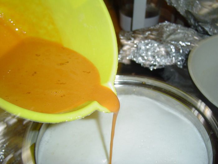 Готовим крем, для этого смешиваем молоко, сливками, сахар(70 г), перемешиваем. Высыпаем порошок пудинга в миску, добавляем 5 ст.л. молочно-сахарной смеси, кладем желтки и перемешиваем. Молочную смесь доводим до кипения и выливаем пудинговую массу, постоянно помешивая доводим массу трижды до кипения.