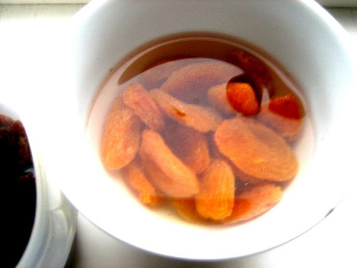 Курагу зашпарить кипятком и оставить в воде.