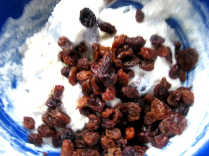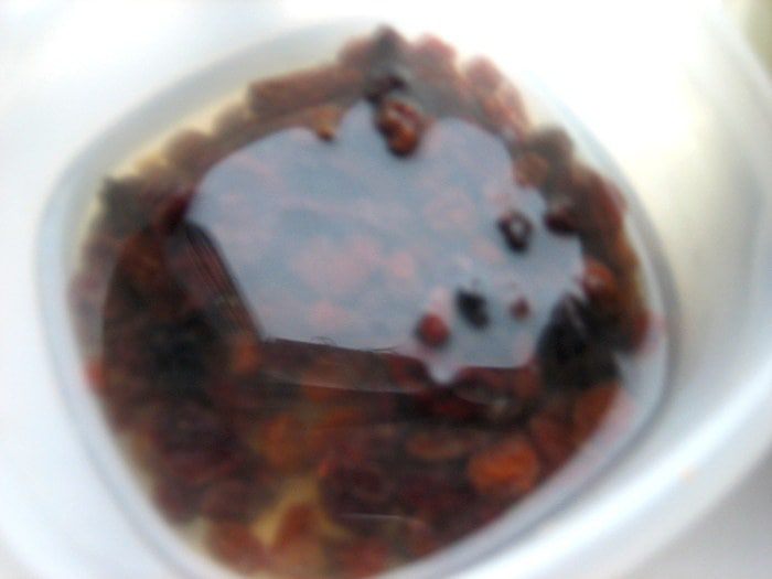 Изюм тоже залить, но ему нужно меньше времени провести в воде.
