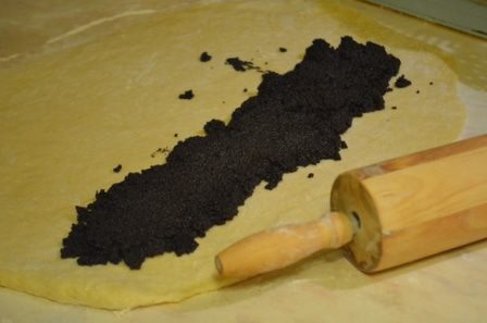 Вдоль всего края выложить начинку.