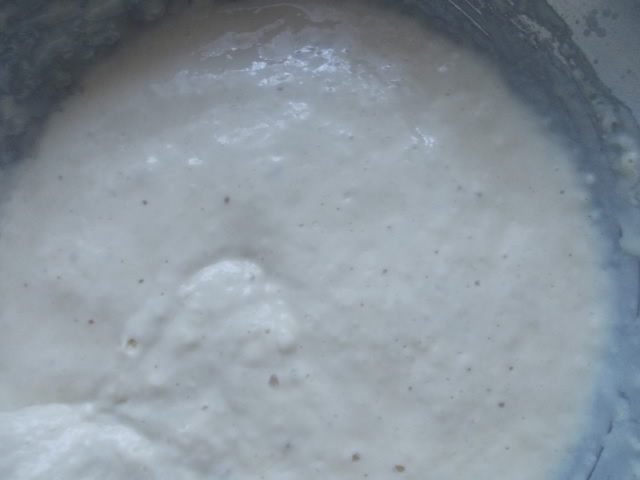 Дрожжи залить теплым молоком,добавить 1 стакан муки и перемешать. Поставить в теплое место, пока не пойдут пузырьки.