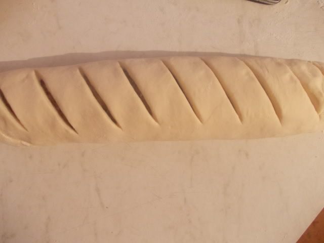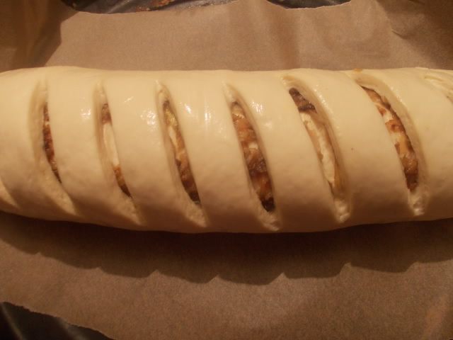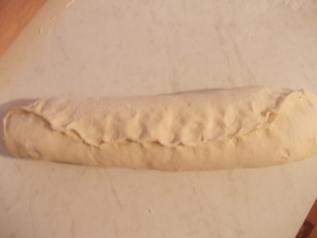 Свернем тесто в рулет, защипав края. Перевернуть швом вниз.