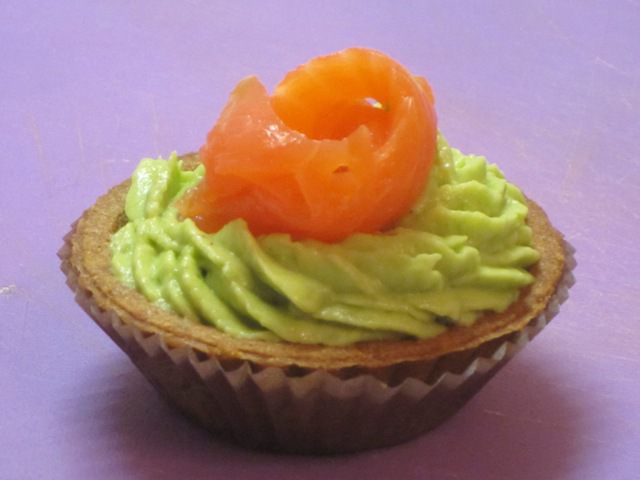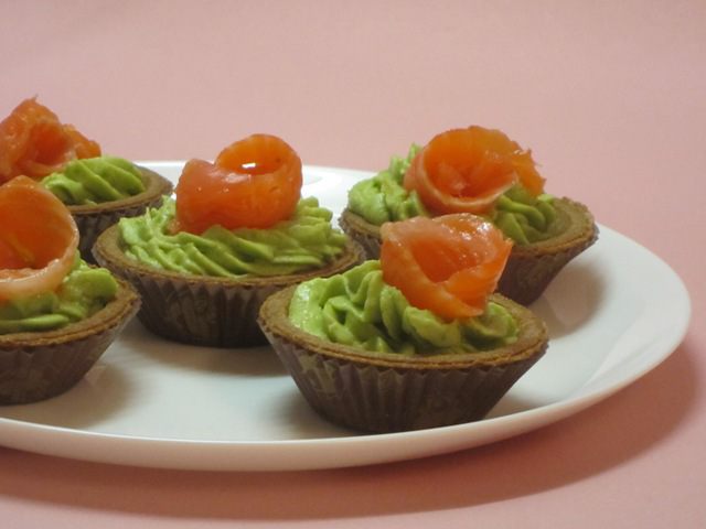 Получившийся крем из авокадо с помощью кондитерского шприца отсадить в тарталетки.